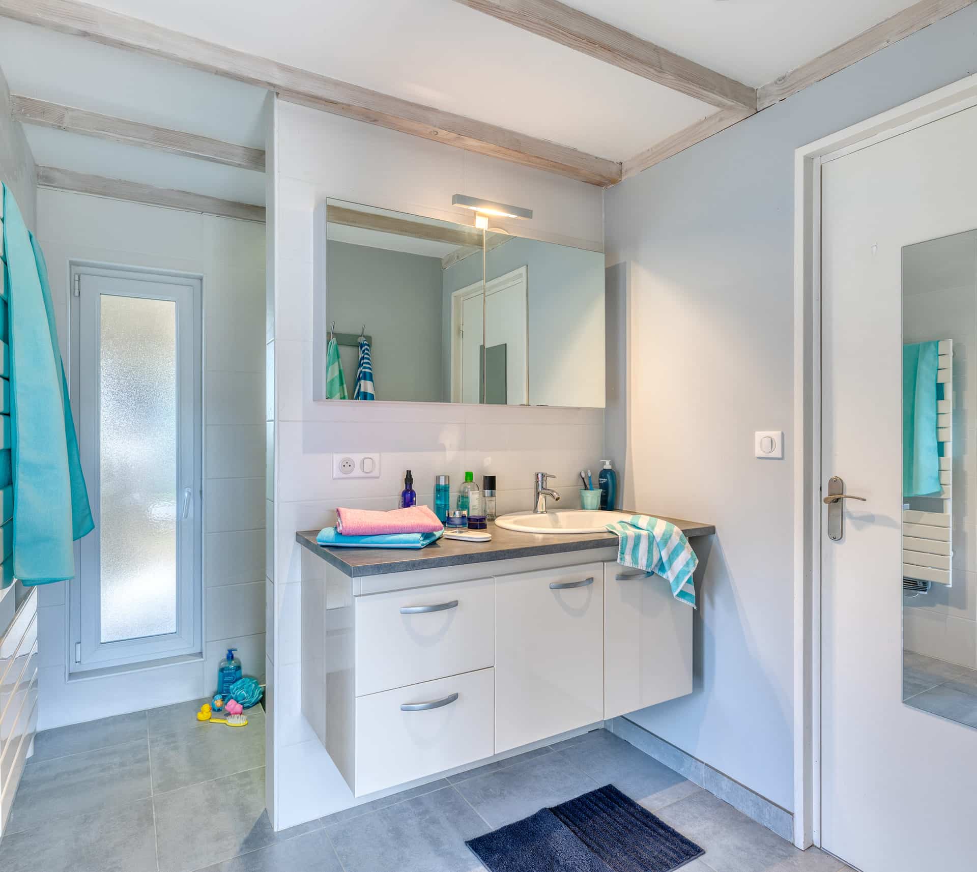 1 Schlafzimmer mit Etagenbett (1 Bett 140x190 unten und 1 Bett 90x190 oben) und ein drittes Schlafzimmer mit Etagenbett (70x190).